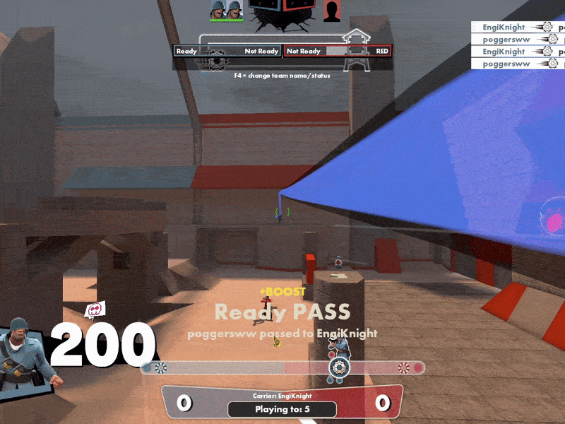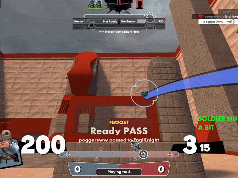 Performing a self bomb that, when timed correctly, allows you to catch the ball as it spawns and immediately scoreNote: QuickFix medic can winstrat but you need a soldier to do the regular winstrat jumps to do so