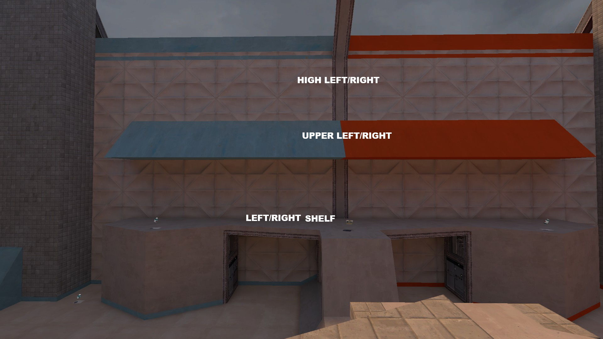 - Long elevated portions of the map on each side that span from one team's side to the other. Usually flat, but there are maps replace shelf with surfable ramps.